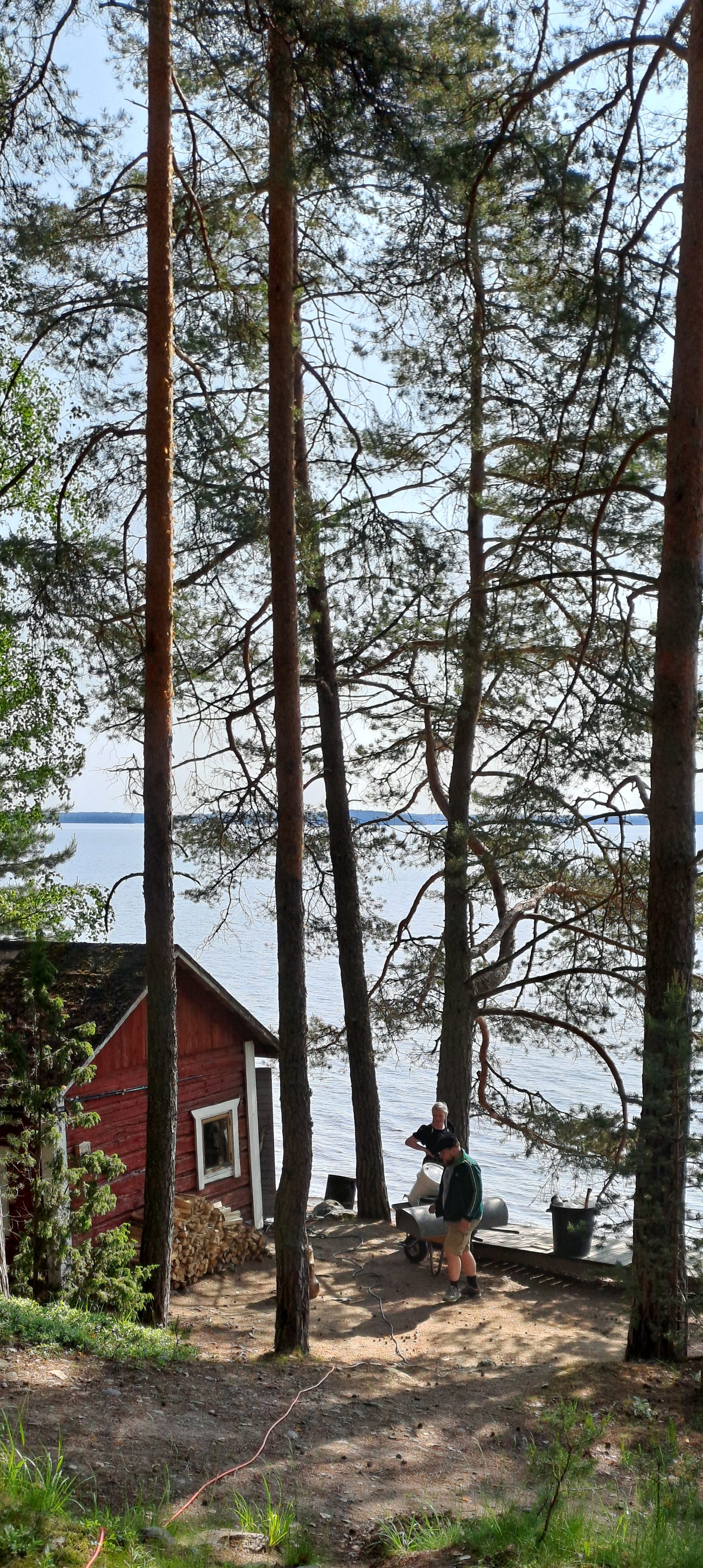 S. et S. ont décidé de préparer une sahti pour participer au concours régional qui se tiendra le mois suivant. Ç'a commencé de bon matin un dimanche : on est descendus au sauna au bord du lac pour préparer une cinquantaine de litres en une dizaine d'heures, à trois adultes. Du travail, donc, surtout du nettoyage (l'équipement doit être stérile ou presque) et de l'attente.